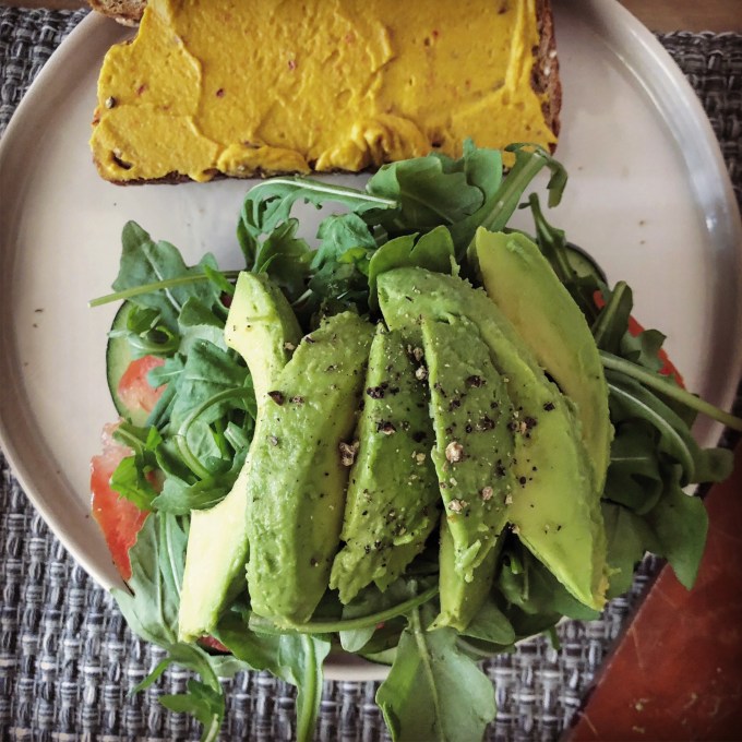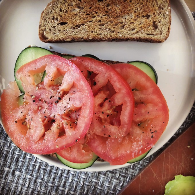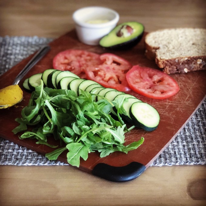 - whole grain bread, fresh or toasted (I used frozen Dave’s Killer Bread and toasted it)