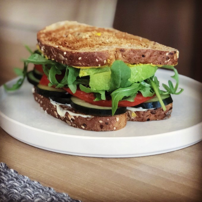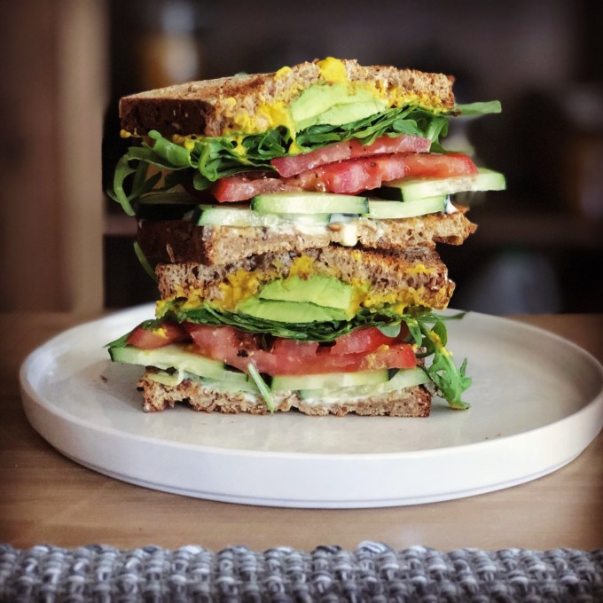 While it’s supposed to be June gloom here in Southern California, the weather this week is less gloom, more warm and sunny and, therefore, the perfect weather to recreate a version of my sister’s favorite sandwich. Let’s just pause for a sec to talk about the fact that I have never, ever looked at a veggie sandwich and thought, that looks amazing!