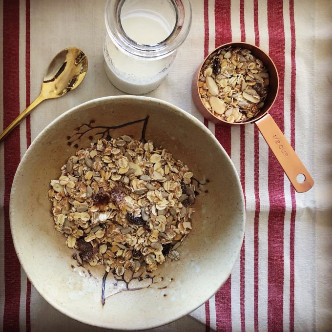 Muesli is generally made of three thing: grains, nuts, and dried fruit. It’s easy to make and can come together in like two minutes. Literally. The fun thing about making muesli is that you can truly customize it however you’d like it. Below is a general guide to ingredients and amounts but you can even customize that, too. I like to use a variety of grains but if all you have is rolled oats or you don’t want to try another grain, use rolled oats as your grain. Keep a big container of this on your counter and eat it every morning before going to work or school or starting your busy day.