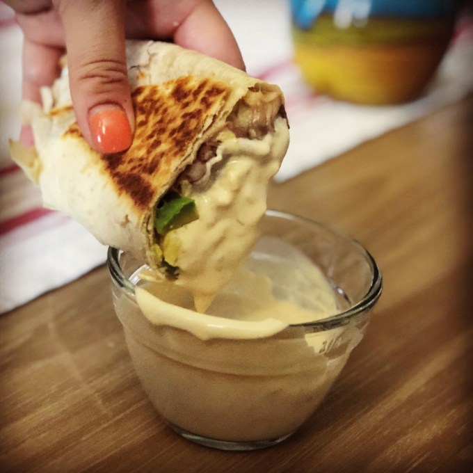 When Sis rolled into town she arrived with an expired jar of Sendik’s Monterey Jack queso sauce and suggested we find recipes to use it up, I was game. I don’t really believe in expiration dates for canned goods, unless the date is more than like 5 years old, maybe. Also, I knew immediately what I wanted to use for at least part of the queso sauce: dipping sauce to accompany a breakfast burrito. I knew Sis would approve because she goes ga-ga for breakfast burritos.