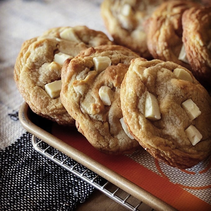 So when I volunteered to make cookies for my neighbor who was in the hospital with a very serious illness (prior to the coronavirus outbreak), and she told me her favorite flavor cookie is macadamia nut white chocolate chip, I was naturally disappointed. Which doesn’t really make sense if you think about it. It’s not like I was making the cookies for my myself. Also, I don’t keep white chocolate on hand (because I don’t like it), and I generally do not have macadamia nuts on hand either.