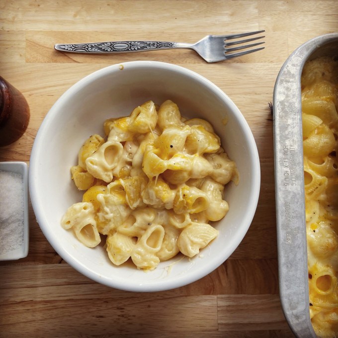 - 1 lb. dried pasta, your favorite shape (extra fancy conchiglie is Sis and my favorite shape for mac and cheese right now)