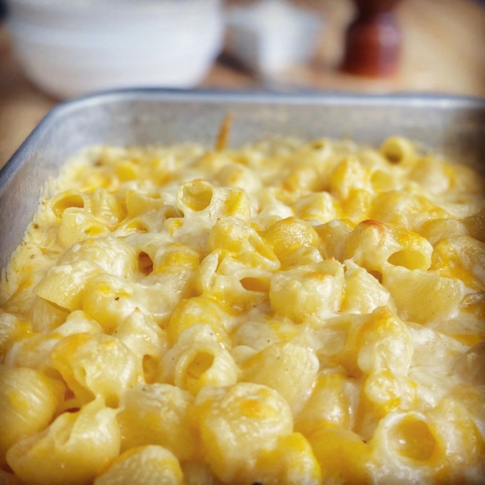 This recipe is gently adapted from The Chunky Chef’s recipe for Creamy Homemade Baked Mac and Cheese.