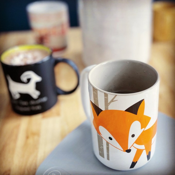 I don’t know where my mom got this recipe, but I distinctly remember loving it and drinking copious amounts of it as child. It’s easy to do because the recipe makes a ginormous amount. She had this large green Tupperware bowl with a lid that she stored it in. It seemed to last forever. I grew up in the frozen tundra of Wisconsin and hot chocolate and a fireplace were essential winter pick-me-ups.