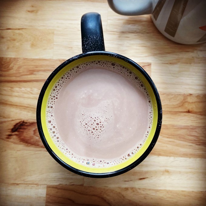 At first sip of this drink, it brought me back to my childhood. It was almost exactly what I remembered it to be, maybe slightly less chocolatey than I remembered, but a close representation. For that reason, I added a bit more Nestles Quick into my recipe below. The recipe called for 16 ounces, I put in almost 18 on accident and it still needed more. Eight extra ounces was too much, so I had to add more of the other ingredients to balance it out.
