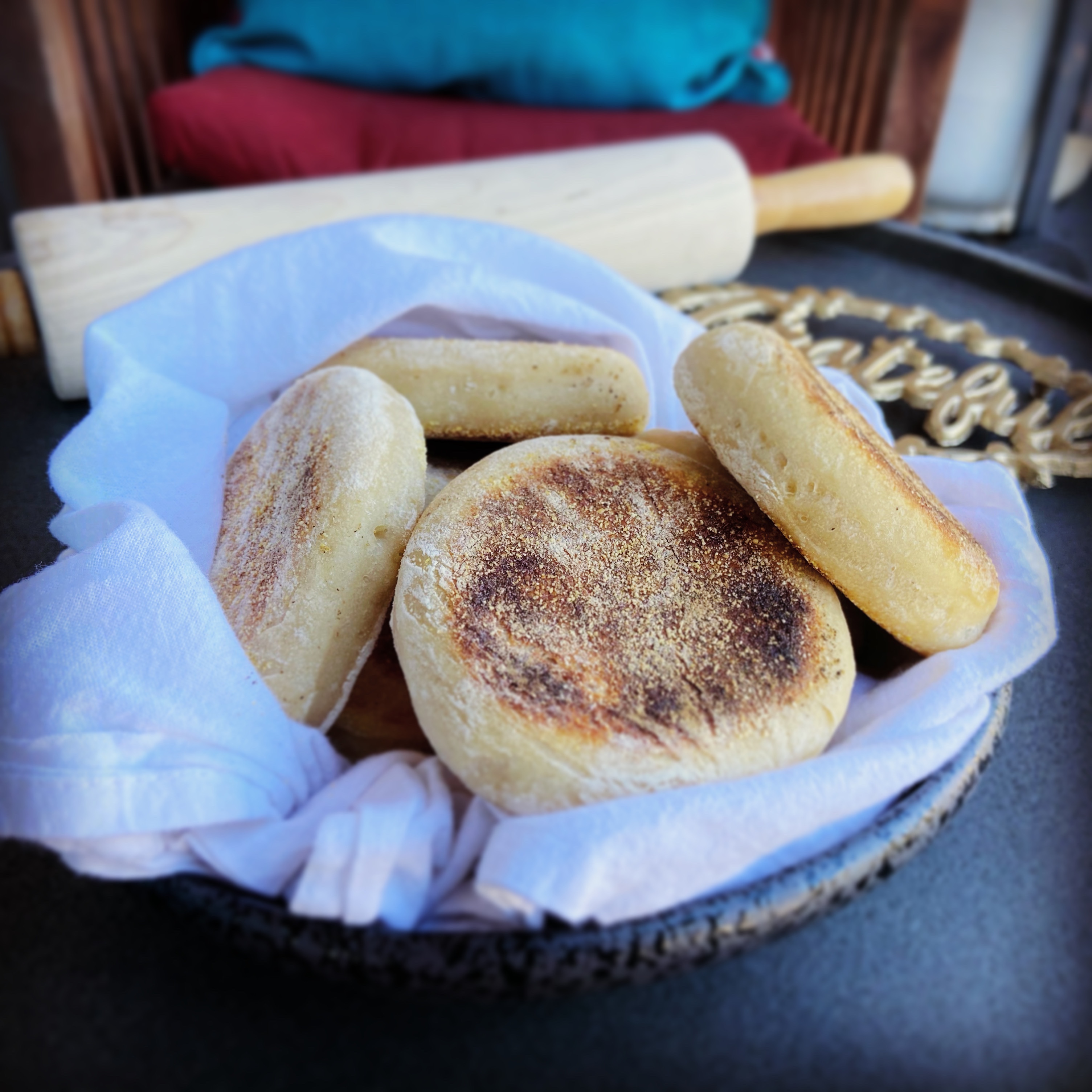 Ever since I had breakfast at a restaurant in Portland, Ore., (years ago!) famous for their homemade English muffins, I have been wanting to make my own homemade English muffins. At some point I purchased an English muffin “cutter” set which is basically like a large biscuit cutter. (Not sure why you need four English muffin cutters. I generally use one biscuit cutter when making biscuits and feel that it would stand to reason that one English muffin cutter would work just fine. I had a hard time finding my English muffin cutter set when I was ready to start cooking the muffins this morning.
