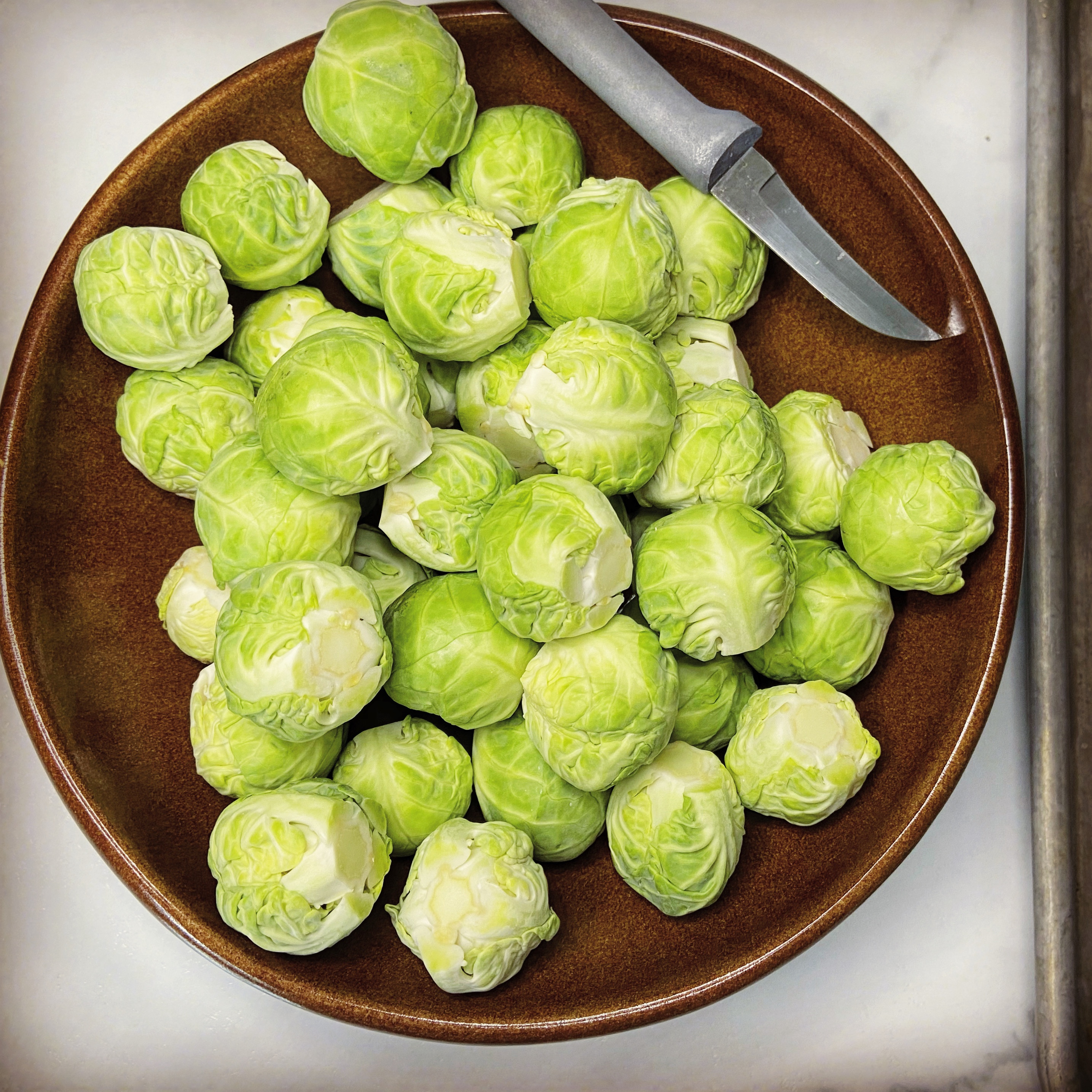 - 2 lbs whole Brussels sprouts, ends trimmed