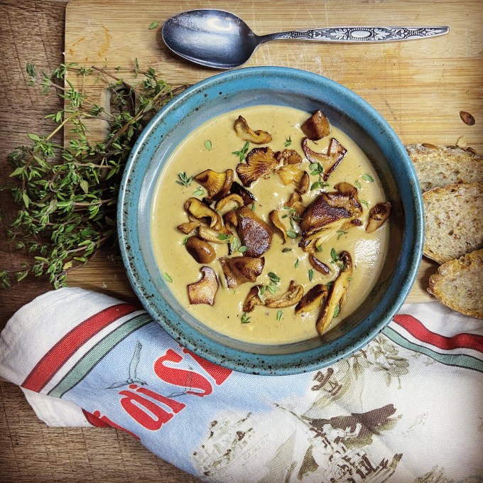 When I picked out this recipe to highlight the wild Chanterelle mushrooms we picked recently, I couldn’t believe I didn’t have a cream of mushroom soup on my blog. Cream of mushroom is so basic. A staple. A classic. What’s wrong with me?