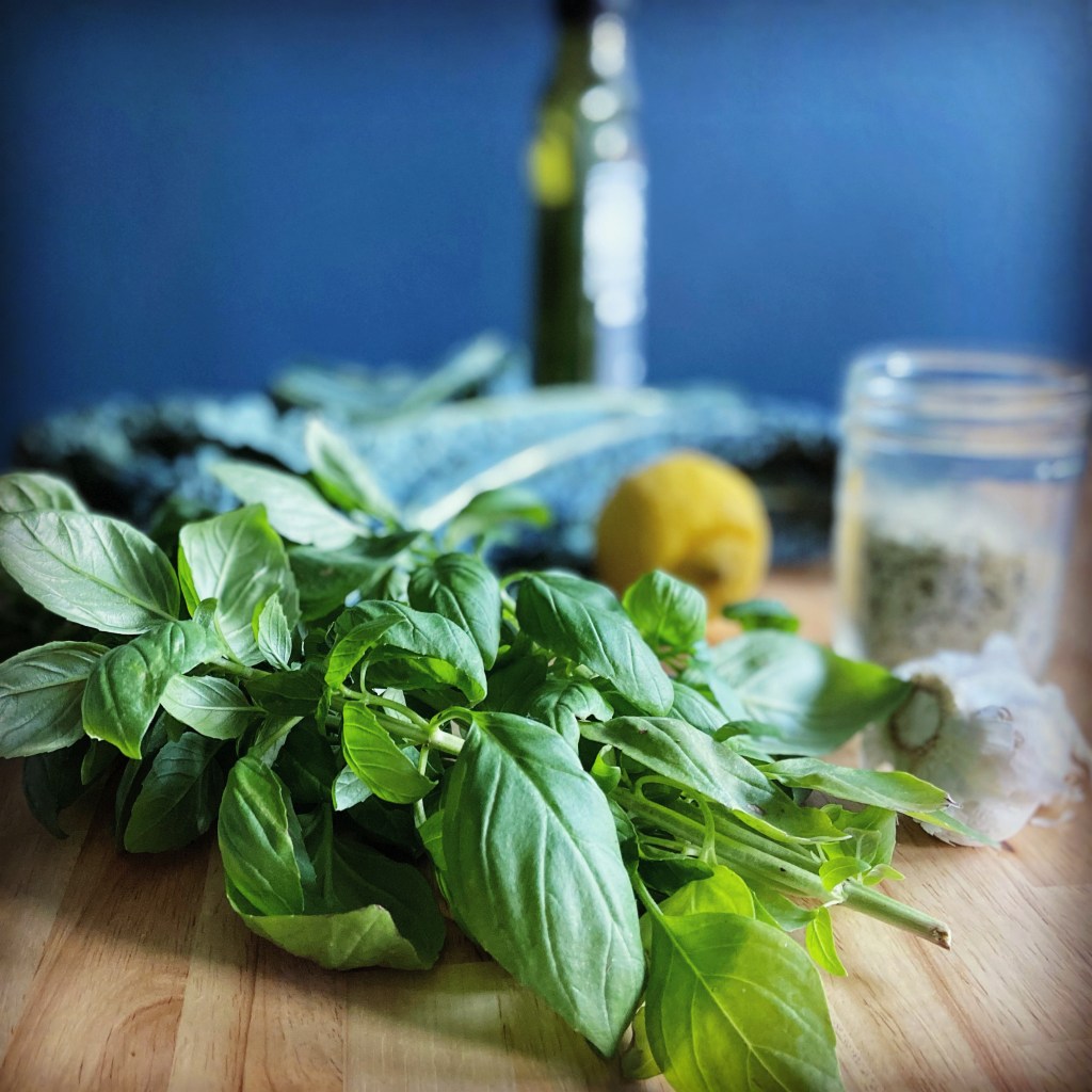 - Wash and dry your kale and basil. I used a salad spinner to do this, triple washing both of them.