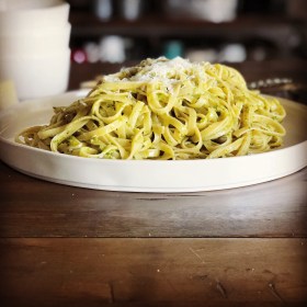 Turkey Pesto Meatballs in Pesto Cream Sauce