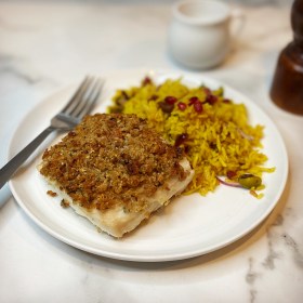 Baked Halibut + Forbidden Rice Bowls {w/ cantaloupe salsa}